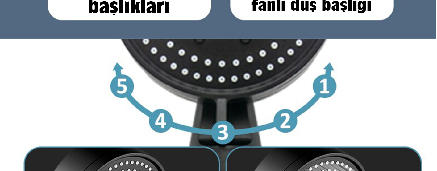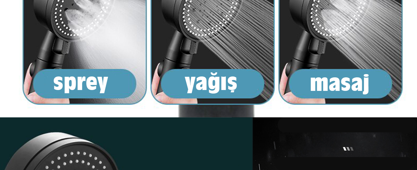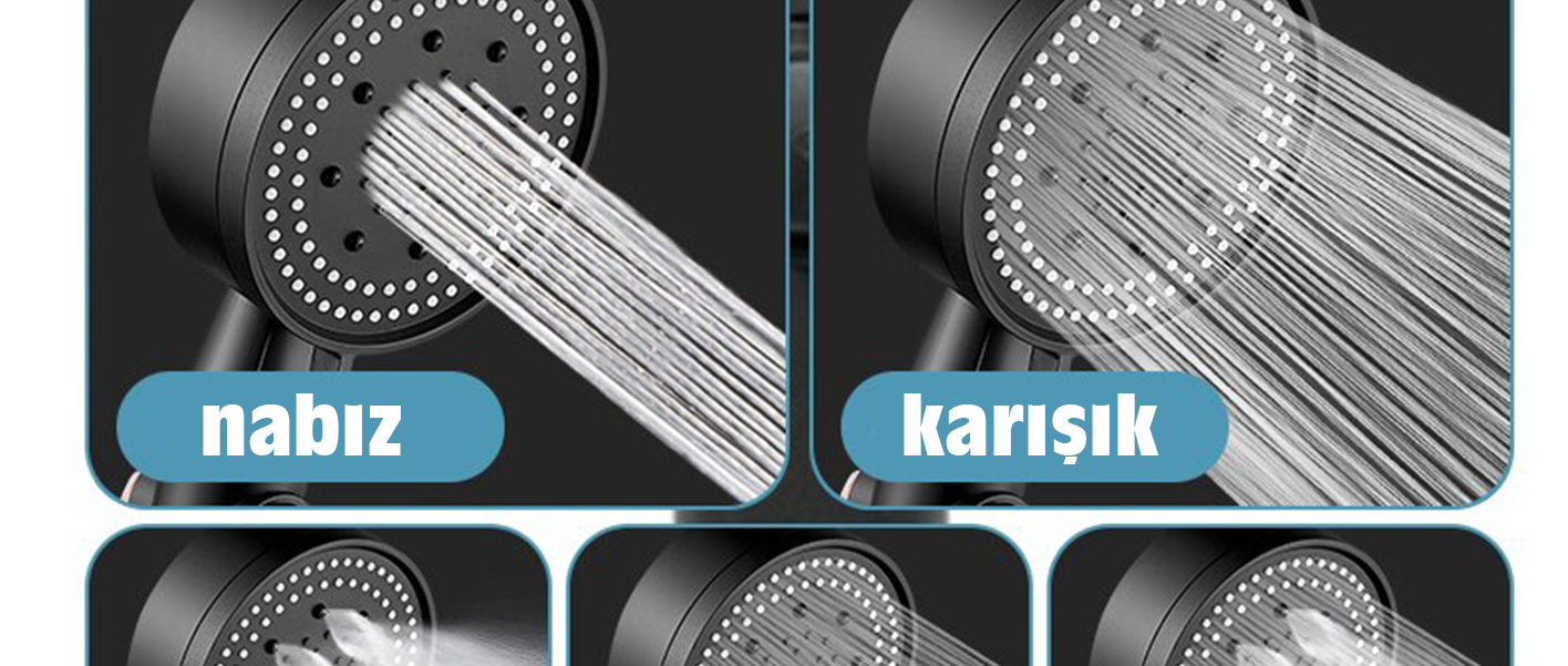3 Adet 5 Fonksiyonlu Turbo Duş Başlığı -